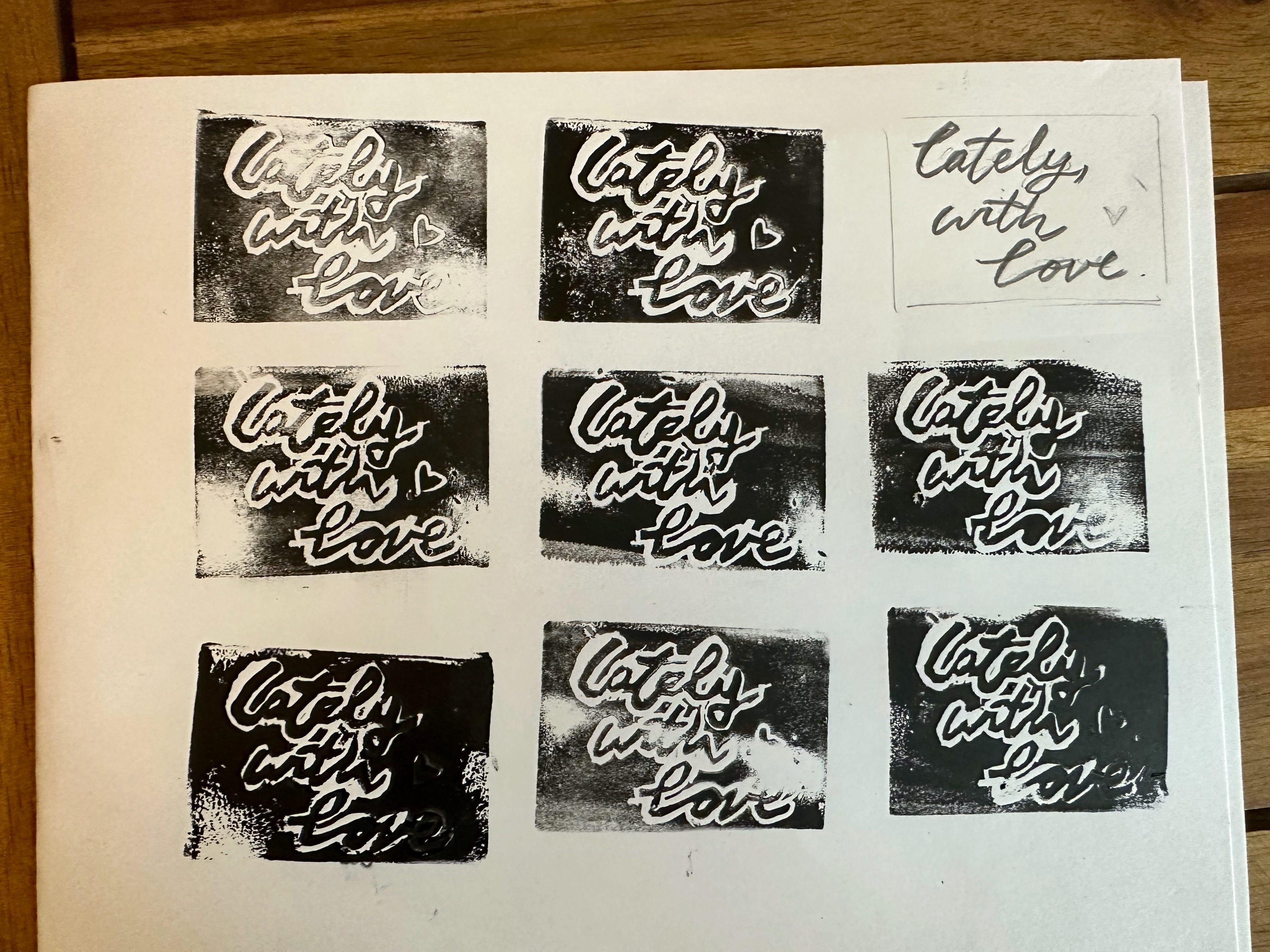I carved a stamp to sign my letters. Originally meant to be “Late, with love.” A late response, as always, but still full of love. But it’s not late, not really, just at a different speed.